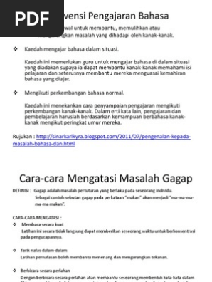 Intervensi Pengajaran Bahasa Cara Mengatasi Masalah Gagap Pink Pdf